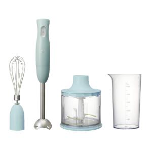 - ミキサー、フードプロセッサー種類:ミキサー、ブレンダー / 据え置き/ハンディ:ハンディ / 目的:つぶす、おろすなど / 消費電力(W):200W / 容量(ml):500ml / ミキサー、フードプロセッサー特徴:レシピブック付属 / コード長さ(m):1.5m / 色:ネイビー系 / 幅(mm):63mm / 奥行き(mm):68mm / 高さ(mm):365mm