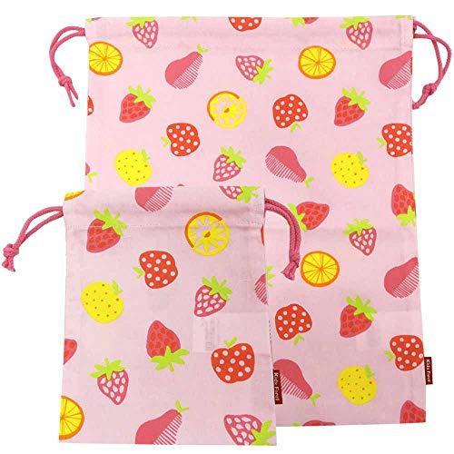 巾着袋 子供用巾着 コップ入れ 体操服袋 給食袋 大小 2枚セットKidsForet キッズフォーレ- フルーツ/ピンク