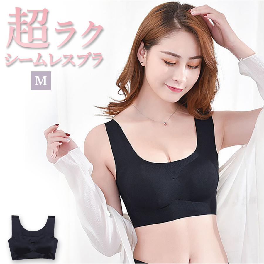 ブラジャー シームレス ノンワイヤー ナイトブラ スポーツブラ 育乳 Mサイズ ブラック 1枚入り 7日保証[M便 1/2]